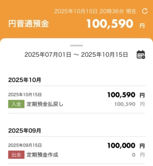 1ヶ月間10万円を預けて、590円プラスになりました
