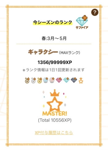 ギャラクシー(MAXランク)になったのは初です